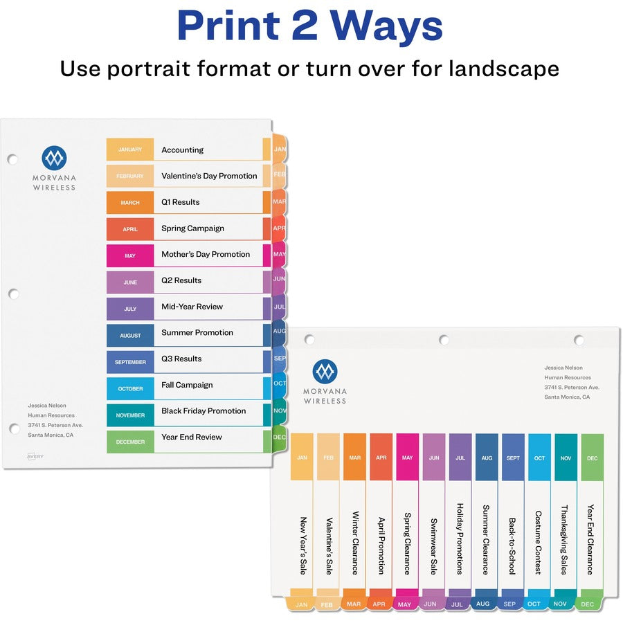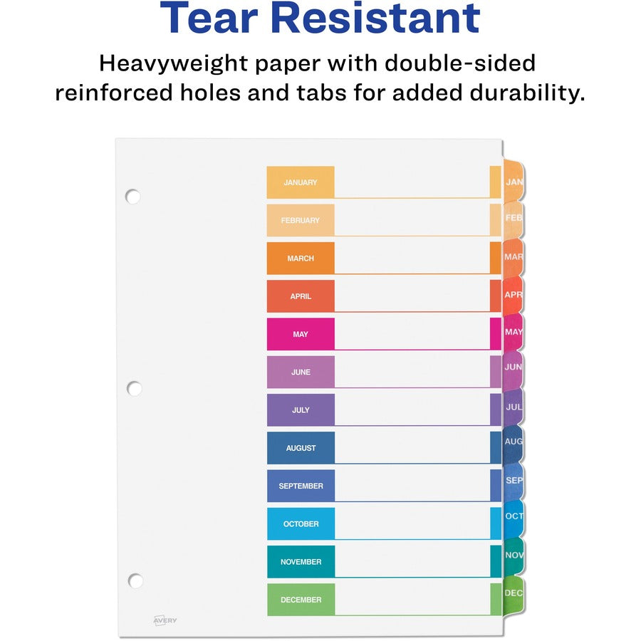 Avery® Ready Index(R) Monthly Dividers, Customizable Table of Contents, Classic Multicolor Tabs, 1 Set (11127)