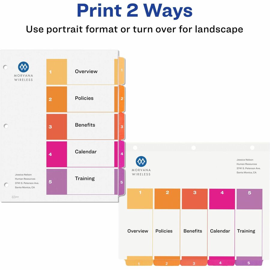 Avery® Ready Index® Table of Content Dividersfor Laser and Inkjet Printers, 5 tabs, 6 sets