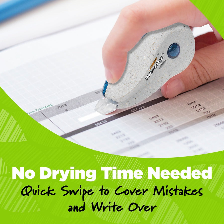 Marketing Information: Help fix our planet's future with the BIC Ecolutions Wite-Out Brand correction tape. This Wite-Out Brand correction tape is not only made from 56% recycled plastic excluding tape, but the paperboard used in the packaging is made up of 100% recycled content and is recyclable. Each convenient dispenser contains 6 meters of white correction tape so you can draw or write safely knowing even if you mess up, there's a fix. The BIC correction tape goes on dry, allowing you to make instant corrections with no mess and no waiting time, while the convenient size allows hands of all sizes to make quick and accurate corrections. Suitable for lefties and righties, these brightly coloured correction tape dispensers are compact enough to fit in any bag so students can easily correct their work. Looking for larger quantities of eco-friendly school supplies? Choose this bulk pack of correction tape, which contains 10 BIC Wite-Out Brand tapes. Pick up BIC Ecolutions Wite-Out Brand correction tape for a high-quality, affordable tape you can trust.