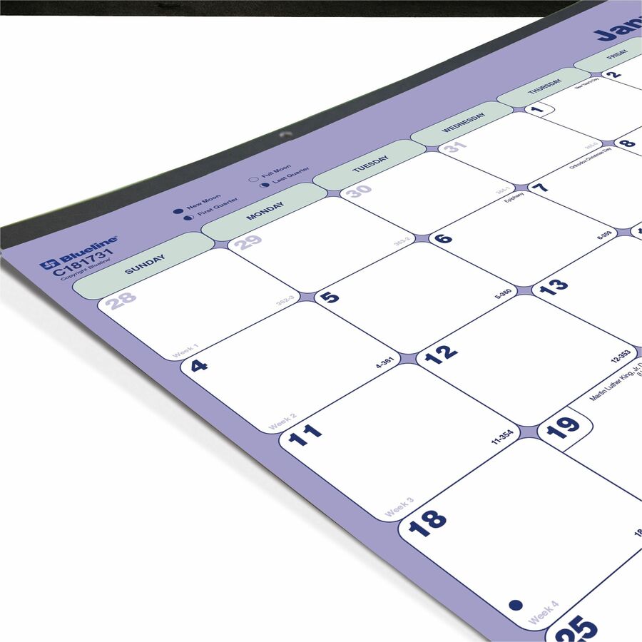 Manufacturer: Dominion Blueline, IncManufacturer Part Number: C181731Manufacturer Website Address: http://www.blueline.comBrand Name: BluelineProduct Name: Monthly Desk Pad, January to December, English (C181731)Marketing Information: