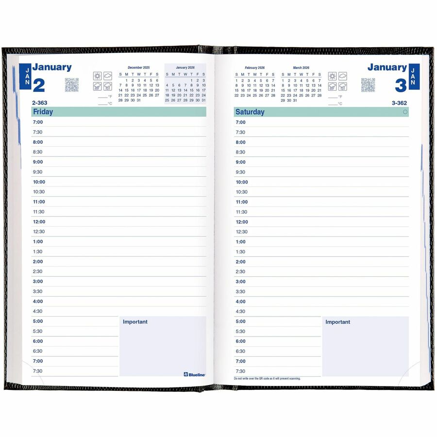 Blueline 2026 Essential 12-Month Daily Planner - January to December - 8" x 5" - Black - English
