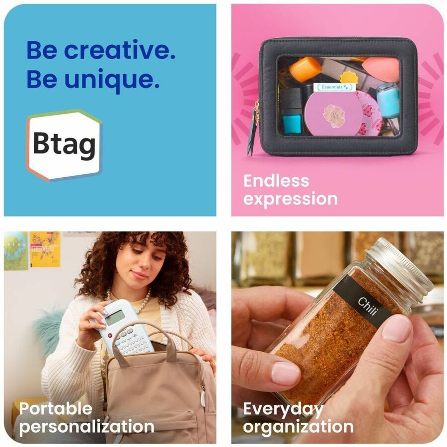 New to labeling? P-touch Btag is a great place to start! Bringing the performance, value, quality, and heritage of Brother Genuine, Btag Label Tapes are the most colorful addition to the P-touch collection of label makers and accessories. They're water, temperature, fade & household liquids resistant, plus microwave, dishwasher & freezer resistant, which makes them an easy and affordable way to personalize, organize and customize your living spaces, workspaces, and every place in between. Available in 17 eye-catching varieties, they're the reliable match for Brother P-touch PT-N10, PT-N20, and PT-N25BT Label Makers. Forget about second-guessing compatibility and fit. All Btag Label Tapes share a common size, measuring ~½ (12mm) wide by 13.1' (4m) long. That means there's plenty of room to print up to 2 lines of text, so you can express yourself exactly how you want, wherever you want.