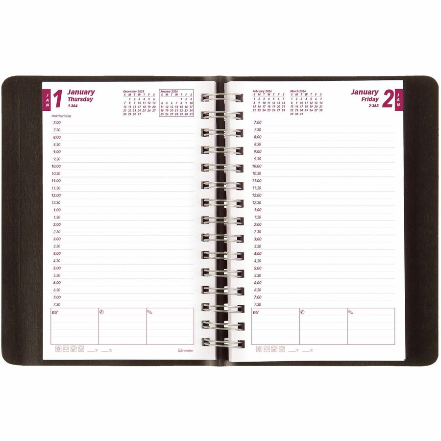 Brownline 2026 Essential 12-Month Daily Planner - January to December - 8" x 5" - Black - English