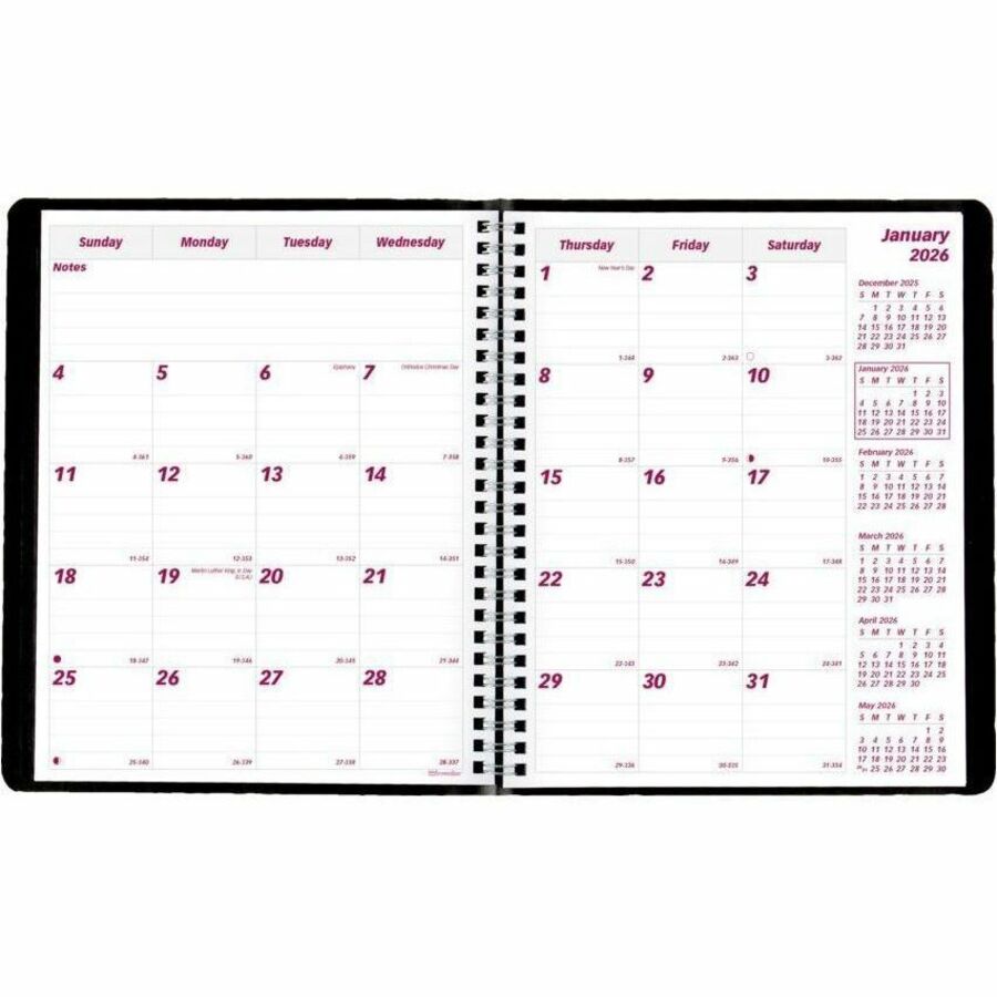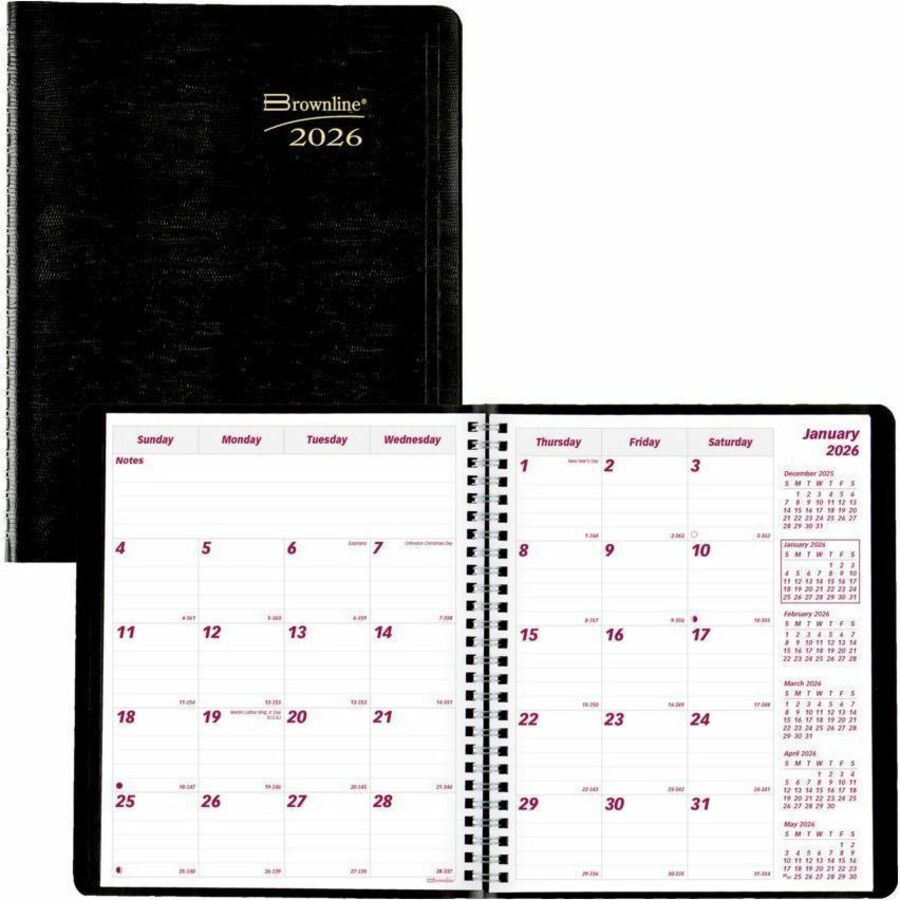 Brownline® Essential Monthly Diary 14 Month Twin Wire 8-7/8x7-1/8" English Black