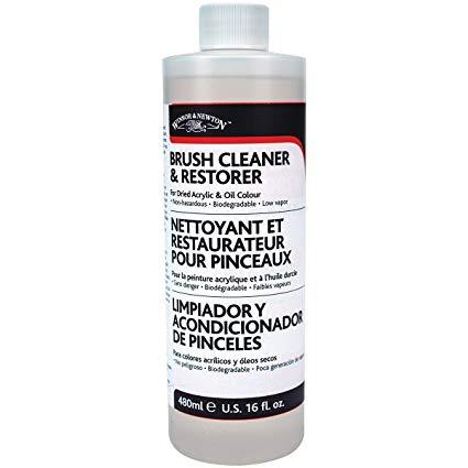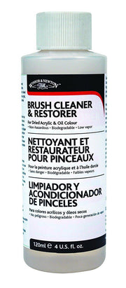 Groundbreaking technology allows artists to clean and preserve their favorite brushes that have been caked with dried acrylic or oil colors! This unique solution is a brush cleaner and restorer, removing all traces of paint from both natural and synthetic brushes, leaving brush heads clean and conditioned, with no oily residue.