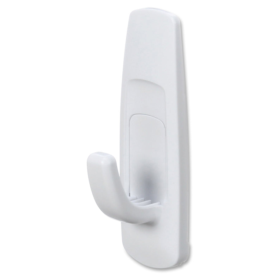 General-purpose hooks are fast and easy to hang on a variety of smooth surfaces. Adhesive strips hold strongly on a variety of surfaces, including paint, wood, tile and more. Damage-free design removes cleanly from surfaces without leaving any holes, marks, sticky residue or stains. Large hooks hold up to 5 lb.