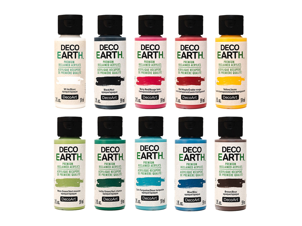 Out of the 700 million gallons of house paint purchased yearly, 75 million gallons go unused and eventually end up in the waste stream. In response, we created DecoEarth Premium Reclaimed Acrylics to help reduce the amount of paint ending up in landfills across the country. DecoArt has partnered with Encore, a California-based company that has been reclaiming unused house paint for over 7 years by collecting paint from PaintCare states across the United States. Encore carefully sorts the reclaimed paint, removing any unlabeled or hazardous materials. The paint is then separated into "like" colors, processed, and goes through a series of filtration systems. Additional materials are added to bring the paint back to specification. Encore sends several color bases to the DecoArt facility in Kentucky, where they are converted into 27 beautiful colors for the DecoEARTH palette by adding precise pigment formulation and other essential materials to ensure they meet the exact specifications of a DecoArt premium paint product. DecoEARTH is AP certified and made in the U.S. with reclaimed paint and globally sourced materials. We are committed to our new eco-conscious journey.