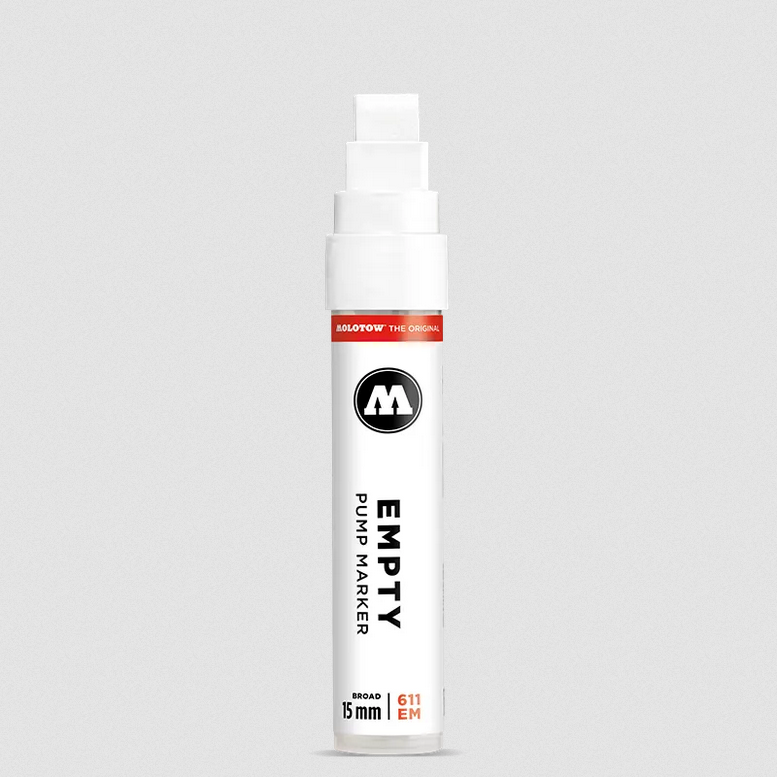 These empty paint markers are great for artist who want a reusable option for their art. They are fillable with any suitable ink or paint allowing for customizable colours allowing for both versatility and control. Made with Molotow's patented pump systems they ensure even delivery and coverage.