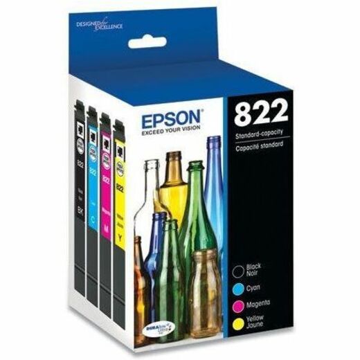 Epson T822 Standard Capacity Combo (CMYK) Pack Ink Cartridge with Sensormatic. Pro-quality ink for all your critical projects.Formulated with fast-drying pigment ink designed for high-speed print jobs, Epson DURABrite Ultra Standard-capacity ink cartridges deliver sharp text, bright colours and print-shop-quality results.
