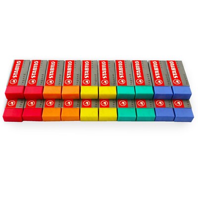 This pack includes 20 Stabilo Legend erasers in assorted colours, designed for effective erasing on various types of paper.