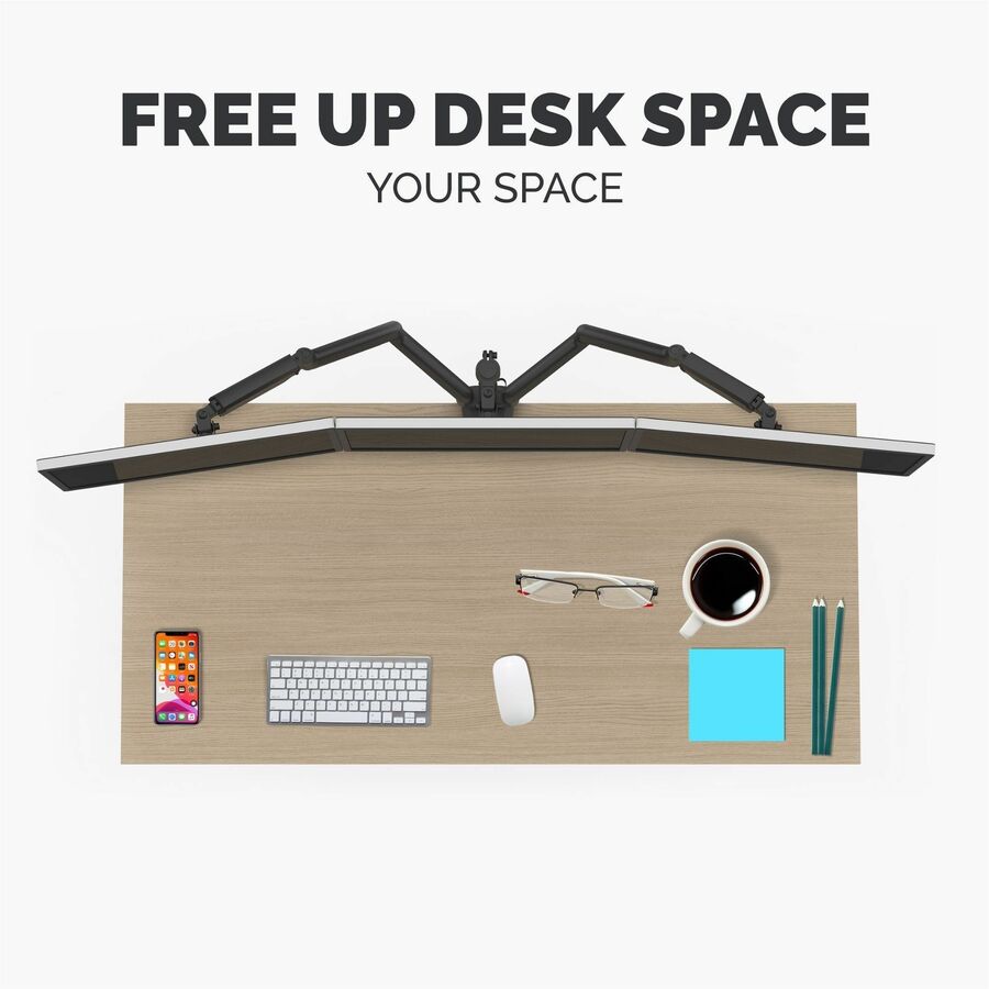Elevate your workspace with the Fellowes Platinum Series Triple Monitor Arm, designed to reduce neck and eye strain while maximizing desk space. The Platinum Series ergonomic monitor arm supports up to 27 and 15.4 lb, making it ideal for home, office, or gaming setups. Featuring fully independent arms with gas spring technology, the Platinum Triple Monitor Arm makes adjustments effortless and enables flexible viewing angles with 360° rotation and +/-45° screen tilt. The quick-fit VESA plate ensures an easy setup, attaching securely to desks via grommet or clamp. Featuring two integrated USB ports at the base, the Platinum Series allows you to keep your devices powered while maintaining a clutter-free workspace thanks to the innovative cable management system. Combining quality, durability, and ease of use, the Platinum Triple monitor arm provides exceptional value and flexibility for any workstation.