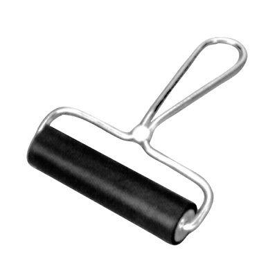 This sturdy rubber brayer is ideal for linoleum block printing and photographic mounting. The 1/8" thick rubber covering provides strong resilience to many surfaces. This lightweight brayer features a solid wood roller core with metal end caps for smooth action and a center-locked steel wire handle. Roller is 4" wide and 1" in diameter