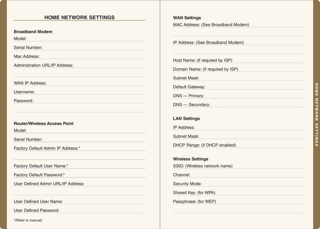 Here's your attractive online password organizer in Extra Large! At last, adequate space in which to record internet usernames and passwords. Space is provided on each page to write down website names, usernames, passwords, and extra notes. Logbook makes an attractive and practical accessory for home or office. Measures 6-1/2'' wide x 8-1/2'' high with 144 pages.