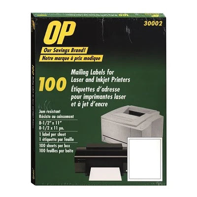 These Op Brand Presaply Laser Labels measure 8.5 by 11 inches and are designed for precise, high-quality laser printing. Each sheet offers reliable label performance, ideal for professional applications requiring clear text and sharp images. Compatible with standard laser printers, they provide consistent feeding and strong adhesion, making them suitable for office, mailing, and organizational uses.