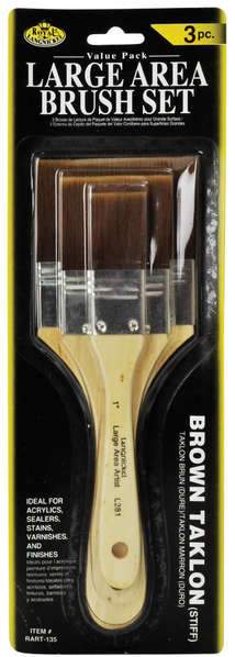 Royal and Langnickel Large Area Brushes are versatile brushes and a favorite of painters and craftspersons alike. Short, varnished wooden handles help these brushes to be durable and resistant to abuse. They can be used to blend, glaze and prime canvas. They are also great for collage, decoupage or working with rough surfaces such as wooden boards or concrete.