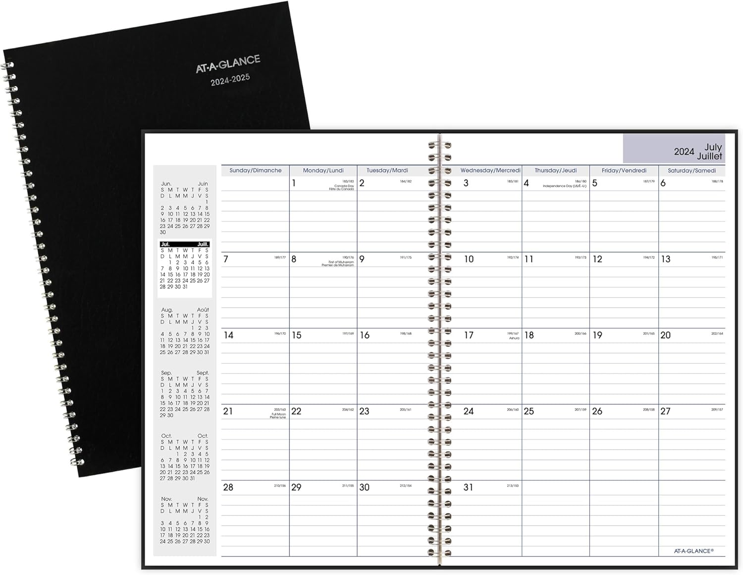 This 14-month academic planner covers July through August with a two-page spread per month, providing ample space for detailed scheduling. Its twin coil binding resists snagging and lays flat for easy writing and reference.