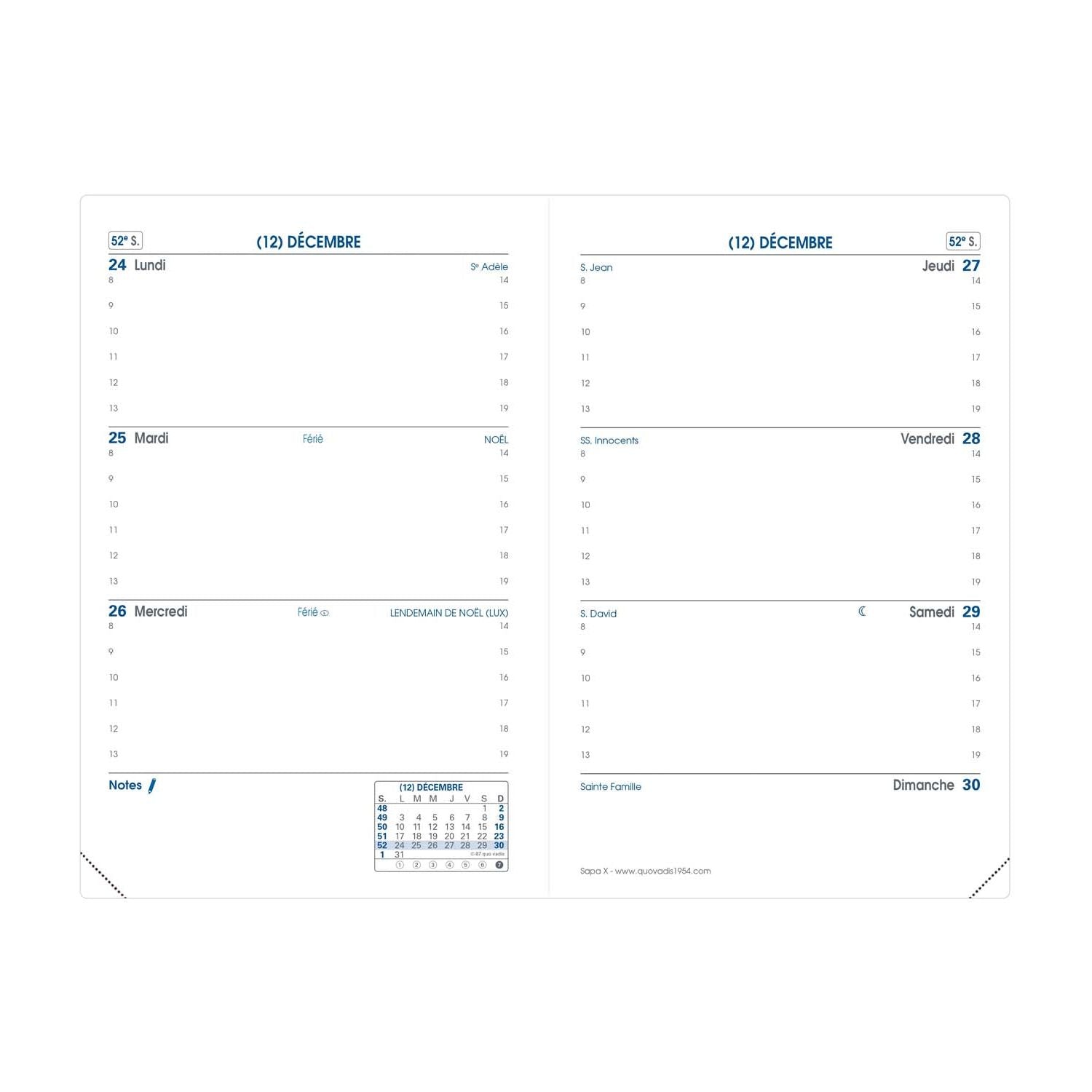 Sized at 9 x 14 cm, it features a horizontal week-to-view layout printed in grey and teal on 65g white paper. The refill includes a fully stitched binding, detachable tabbed address section, calendars for the current and following year, maps, and a personal information page. Special notes pages appear at the start of each month, and a tear-off corner marks the current week, supporting organized planning throughout the academic year.