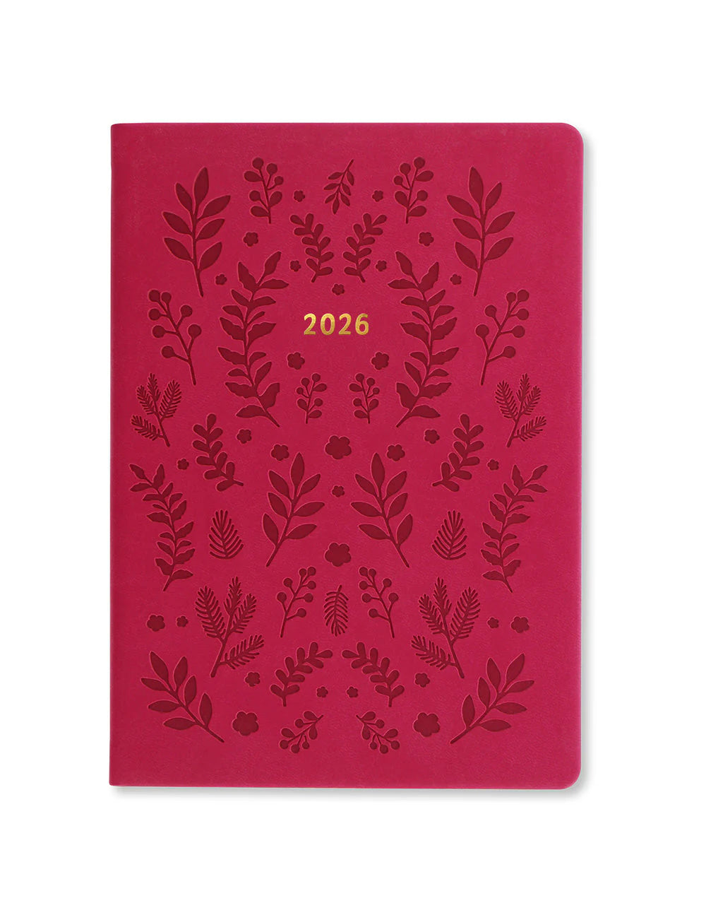 This slim, pocket-sized planner offers a week-to-view layout from December 29, 2025, to January 10, 2027, supporting six languages including English, German, Italian and French. Crafted in the UK with sustainable 70gsm white paper, it features a semi-flexible soft-touch cover with an intricate embossed floral design and date detail.