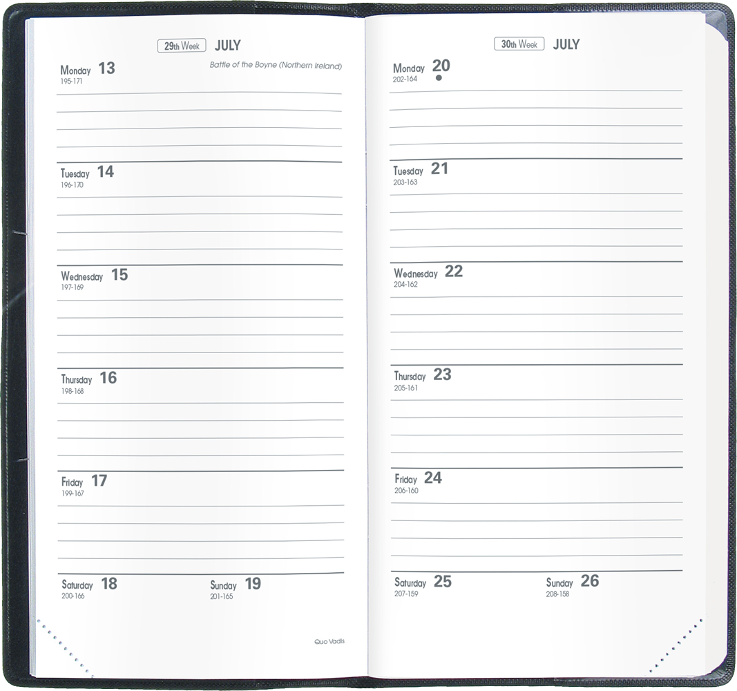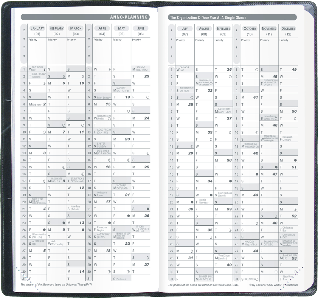 This biweekly planner offers a vertical week-per-page layout from January to December, ideal for detailed scheduling. Each day features blank lines for personalized notes, supported by annual calendars and extra pages for additional planning. Crafted with 64g acid-free, pH-neutral, super smooth paper, it ensures durability and a premium writing experience.