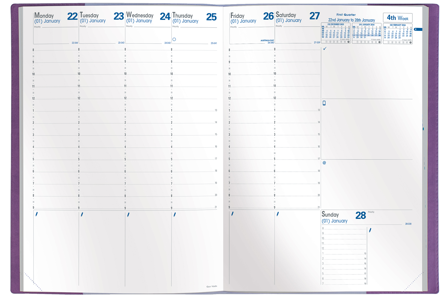 Printed crisply in grey and blue on extra white, super smooth 90g acid-free, pH-neutral paper, it ensures durability and clarity. Additional features include receipts and payments pages, maps, sewn binding for strength and flexibility, and refillable design. Separate A-Z Address tabs and inserts are available.