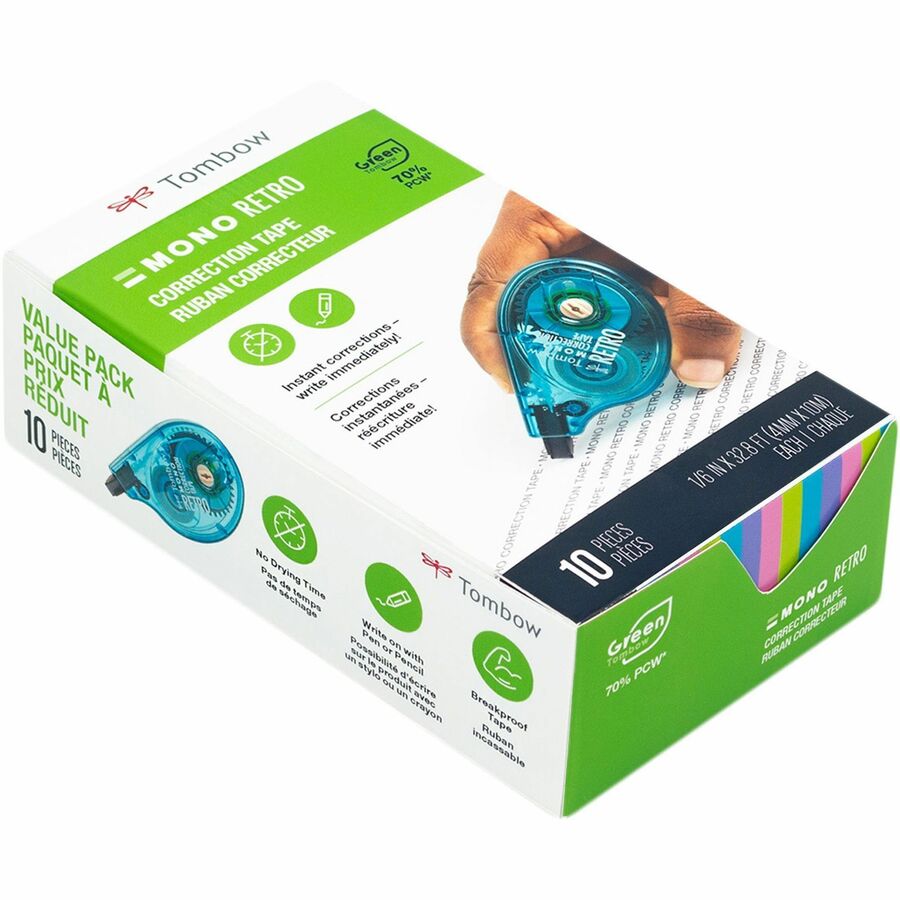 Manufacturer: TombowManufacturer Part Number: 68723Manufacturer Website Address: http://tombowusa.comBrand Name: TombowProduct Line: MONOProduct Name: Mono Correction Tape Retro Applicator PackMarketing Information: Single-line correction tape with side application is easy to use and instantly corrects typed, handwritten or art documents. Premium tape lays down smooth to blend with paper. Make instant corrections with no drying time - no mess and no waiting. Tape allows you to rewrite with pen, pencil or marker. Dual Gear technology and self-tightening mechanism prevent looping and pulling of the tape. Easy-to-use, side-action applicator allows precise corrections. Ergonomic design allows you to comfortably make corrections throughout the workday. Compact applicator is made of a high percentage of recycled materials. Packaged Quantity: 10 / PackProduct Type: Correction TapeProduct Information