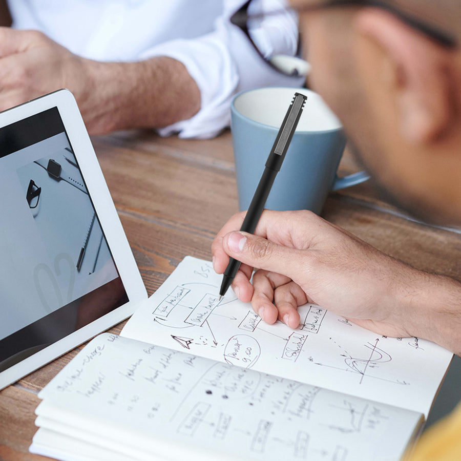 Pen Point: 0.5 mm (0.02) MicroInk Type: Water BasedInk Color: BlueRefillable: NoRetractable: NoBarrel Color: BlackBarrel Material: Stainless SteelClip Material: MetalFeatures: