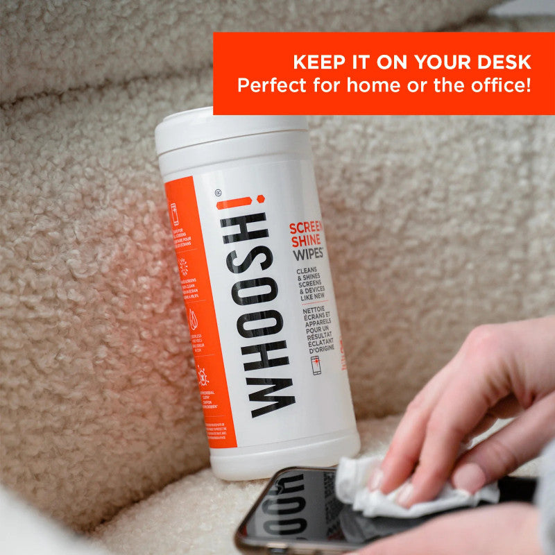 WHOOSH Screen Shine Wipes deliver professional-grade cleaning in a convenient, portable format.