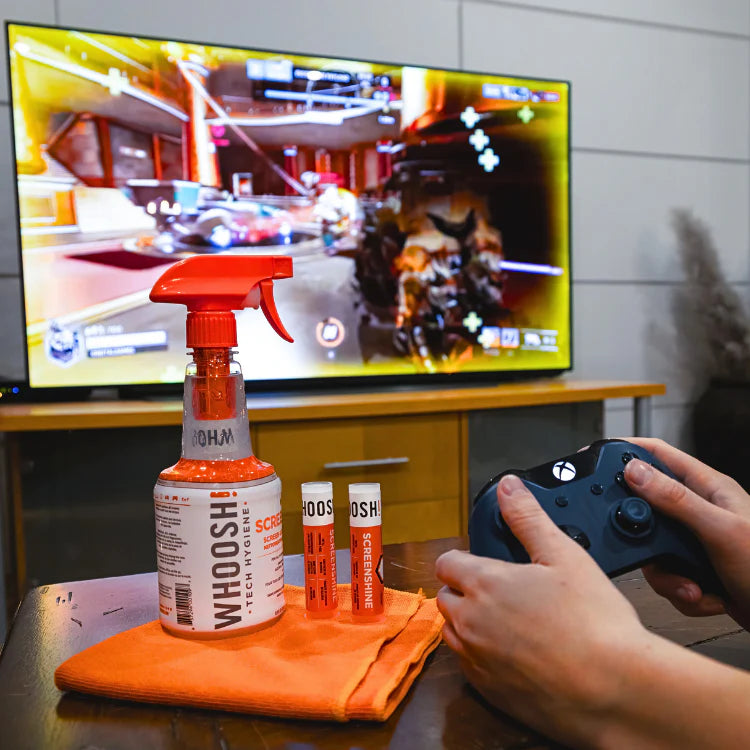 WHOOSH SHINE PRO 500ml is an advanced screen cleaner crafted to make all your screens shine like new. Suitable for phones, tablets, computers, TVs, prescription and polarized eyeglasses, whiteboards, dashboards, and appliances, it delivers effective cleaning without harsh chemicals. Its non-toxic, alcohol- and ammonia-free formula is safe and odorless. Included is a PROTX2-treated premium microfiber cloth that provides antibacterial, antimicrobial, and anti-odor benefits, allowing you to clean and sanitize surfaces gently yet thoroughly. Ideal for maintaining clarity and hygiene across all your devices and more.